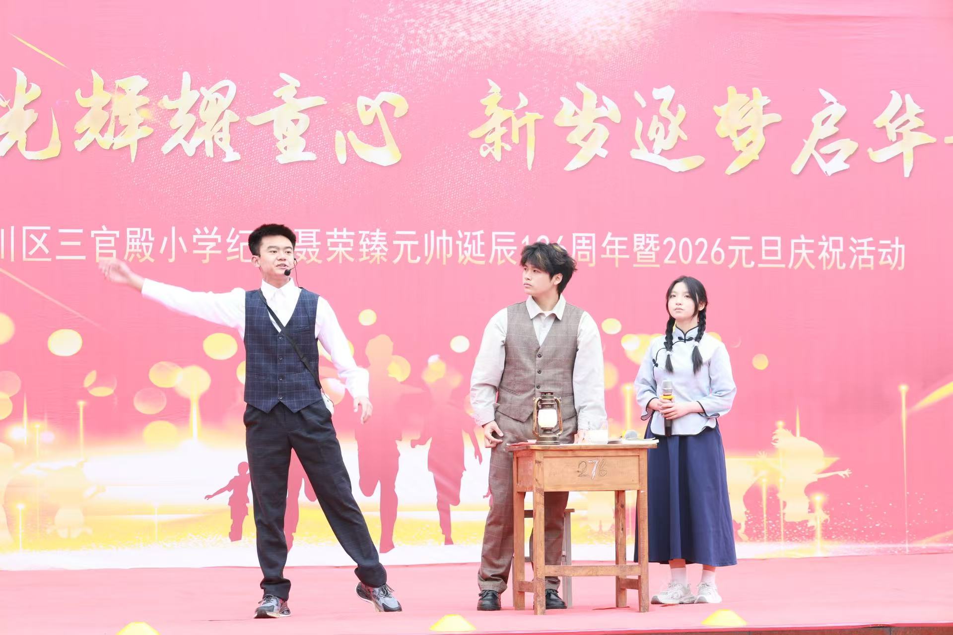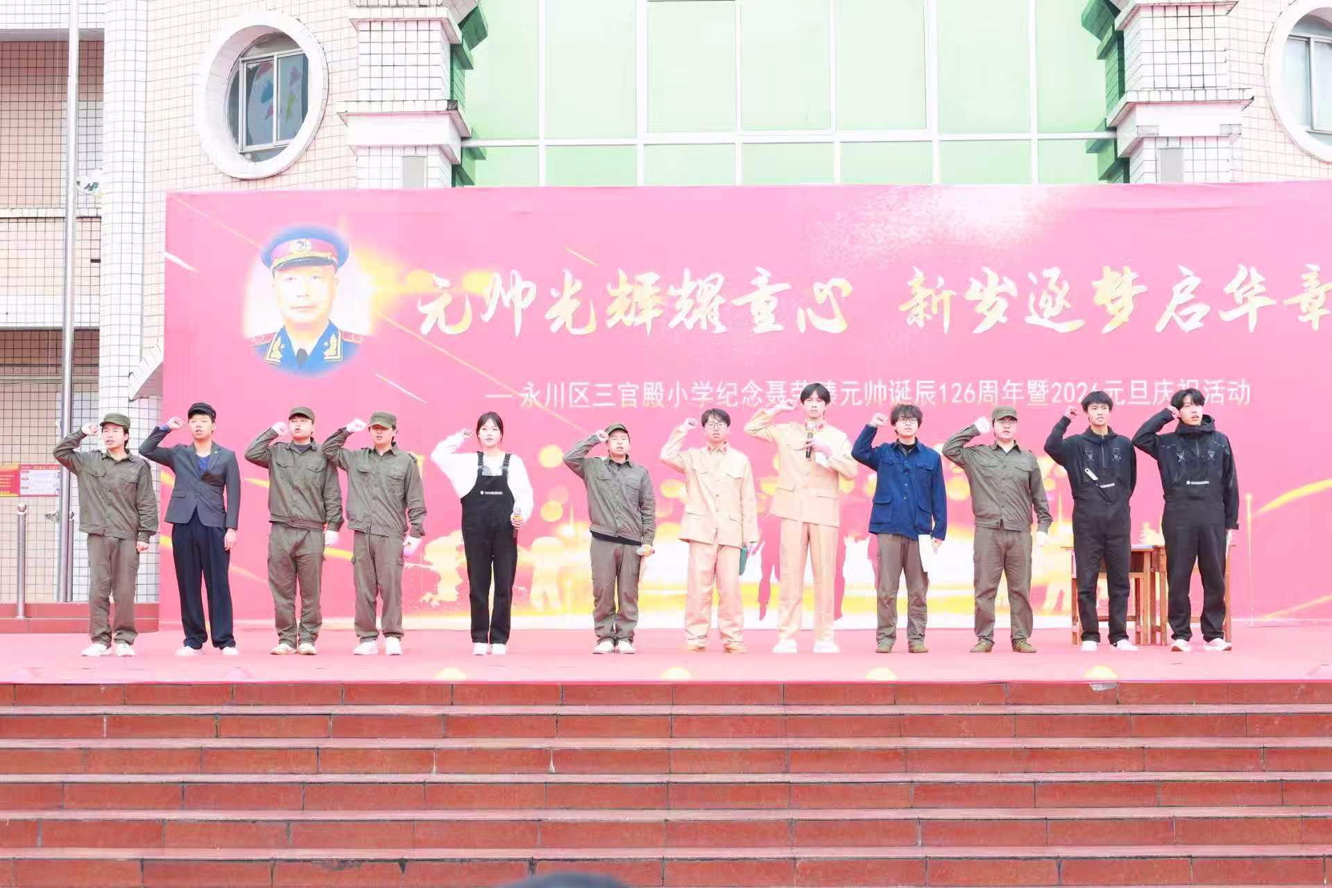 2025年12月24日,永川区三官殿小学举行“元帅光辉耀童心 新岁逐梦启华章”纪念聂荣臻元帅诞辰126周年暨2026元旦庆祝活动。开云在线登录app入口党委书记雷道海、马克思主义学院院长李才俊率师生团队参演,通过红色情景剧、故事宣讲等形式,搭建大中小思政教育一体化实践平台,让聂帅精神与工匠精神深入童心。